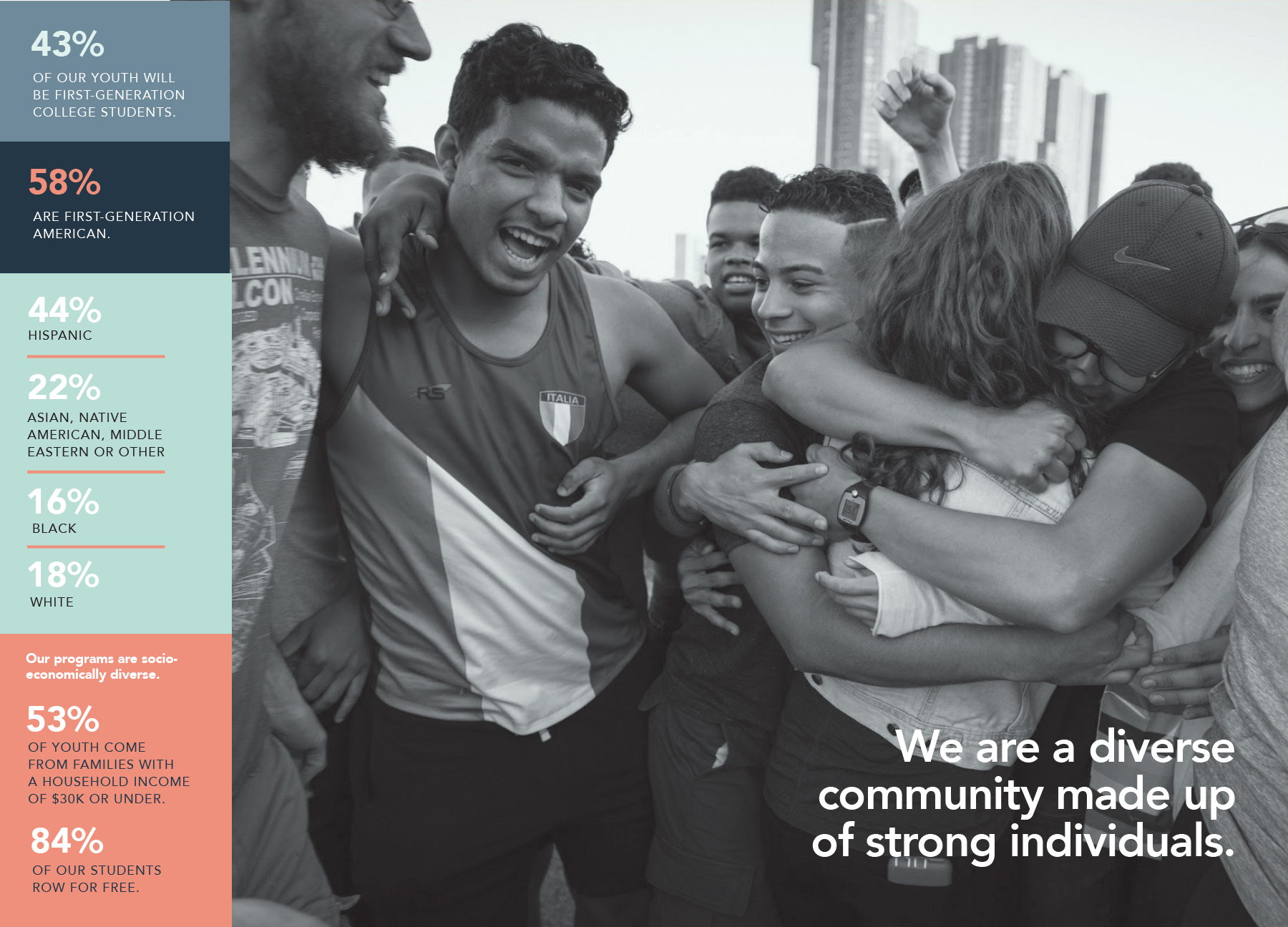 To promote their $46 million capital campaign, Row New York required a brand identity and cohesive marketing assets. The boathouse, designed by world renowned Foster & Partner’s and featured in Architectural Digest became the natural foundation of the brand identity. In addition to the brand identity suite, a printed brochure, website and gala invitation were created to further the campaign efforts.
