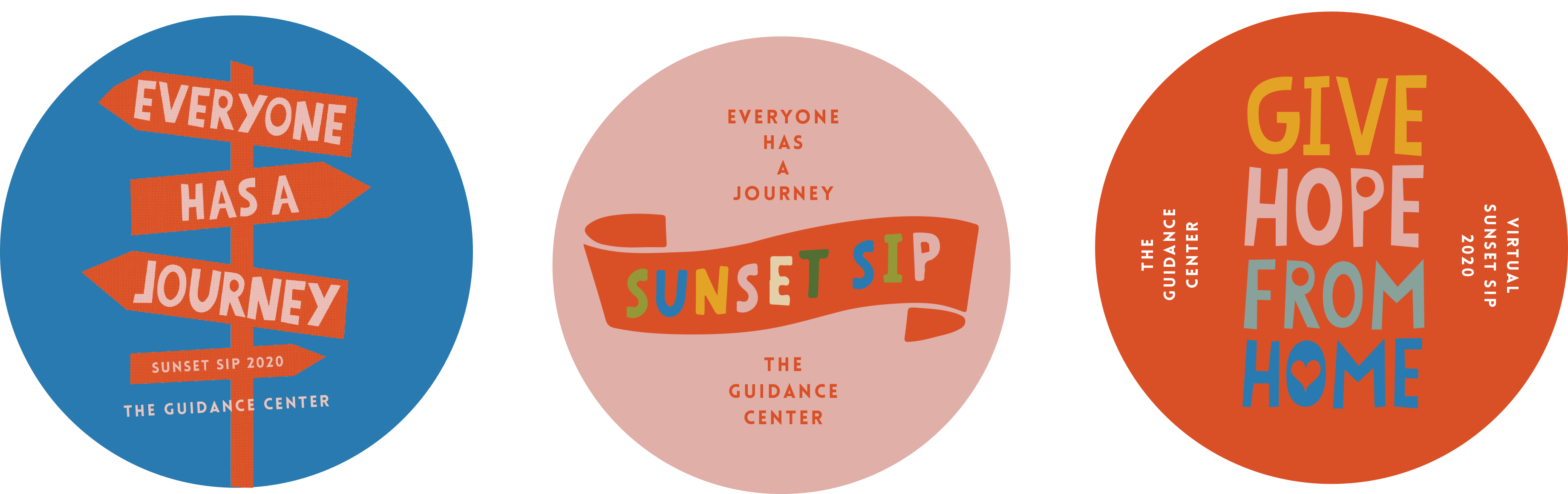A favorite annual event, The Guidance Center’s Sunset Sip was one of many forced to pivot to a virtual platform in 2020. The event theme, branding and collateral communicated hope and positivity. A series of coasters were created to accompany the invitation - encouraging guests to give hope from home.